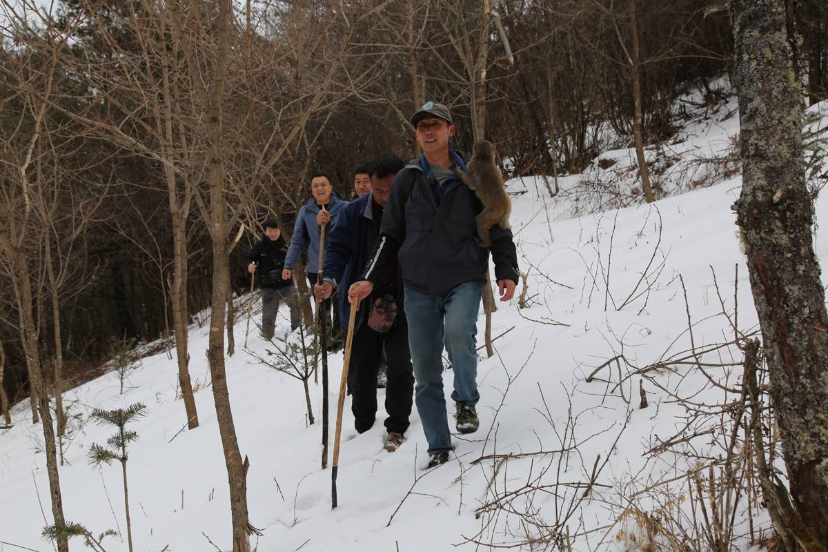 “站长,看这个脚印!”张军忽然蹲下。三人围上去,曾做过兽医的余远军一眼认出:“是果子狸。”天色阴沉,似要降雪。他们继续前行,猴健赖在谭明宽肩上,一只叫“陆虎”的黄狗在雪地里撒欢。